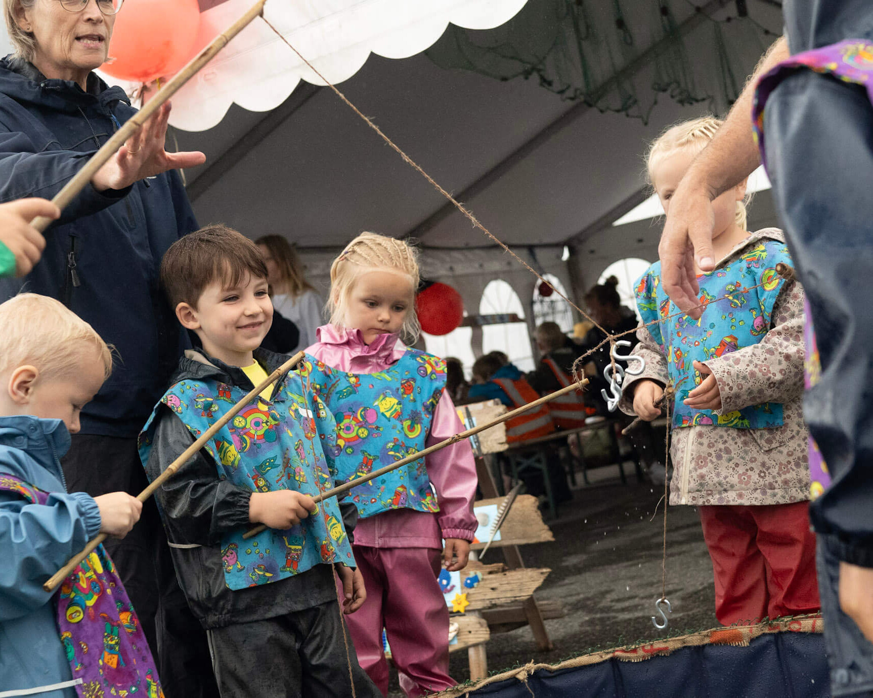 Man kan godt nok både tegne, lave perleplader og fiske med fiskestænger i et bassin hjemme i børnehaven. Alligevel var det en kæmpe oplevelse for alle de børnehave- og førskolebørn, som i dag deltog i Blæst fra Vest på Rødspættekaj.
