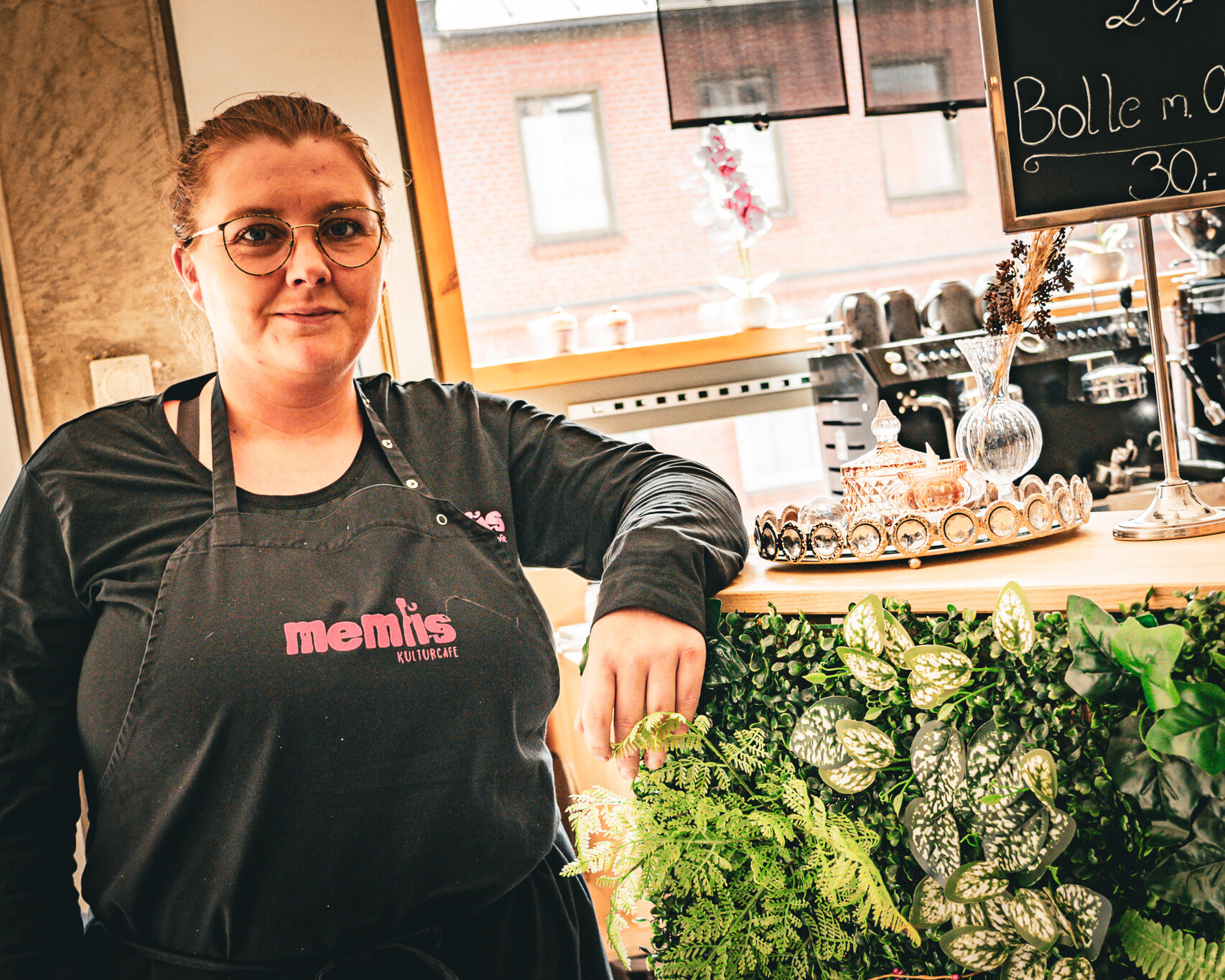 Hun er klar over, at hendes café måske ikke er top of mind blandt byens borgere, hvilket hun selvfølgeligt gerne vil lave om på – samtidigt med at hun udfører den rolle en caféforpagter skal, når nu man deler adresse med byens store bibliotek.