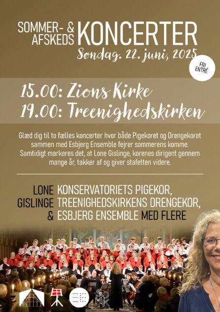 Afskeden markeres med to koncerter søndag d. 22. juni 2025 henholdsvis kl. 15.00 i Zions Kirke og kl. 19.00 i Treenighedskirken.