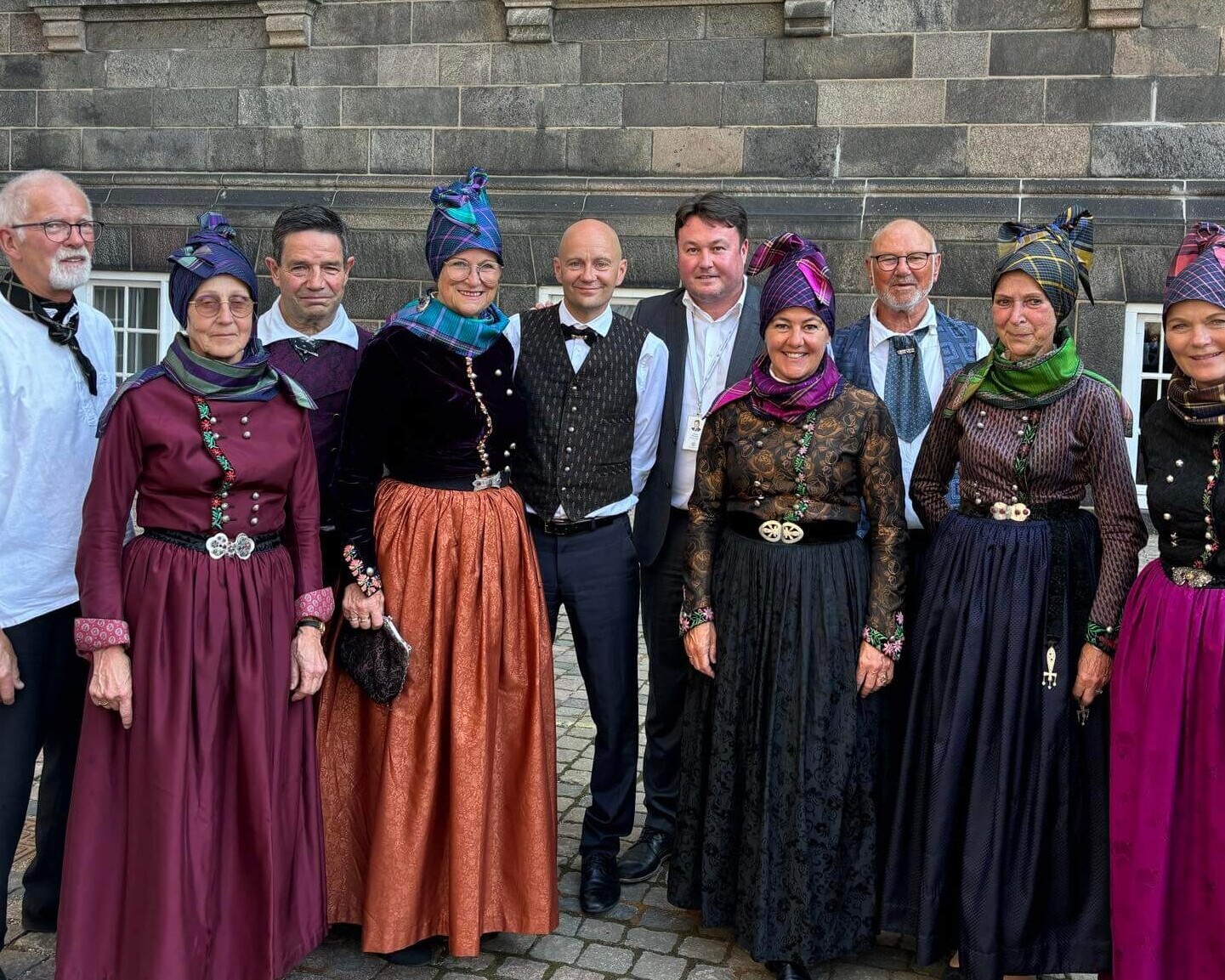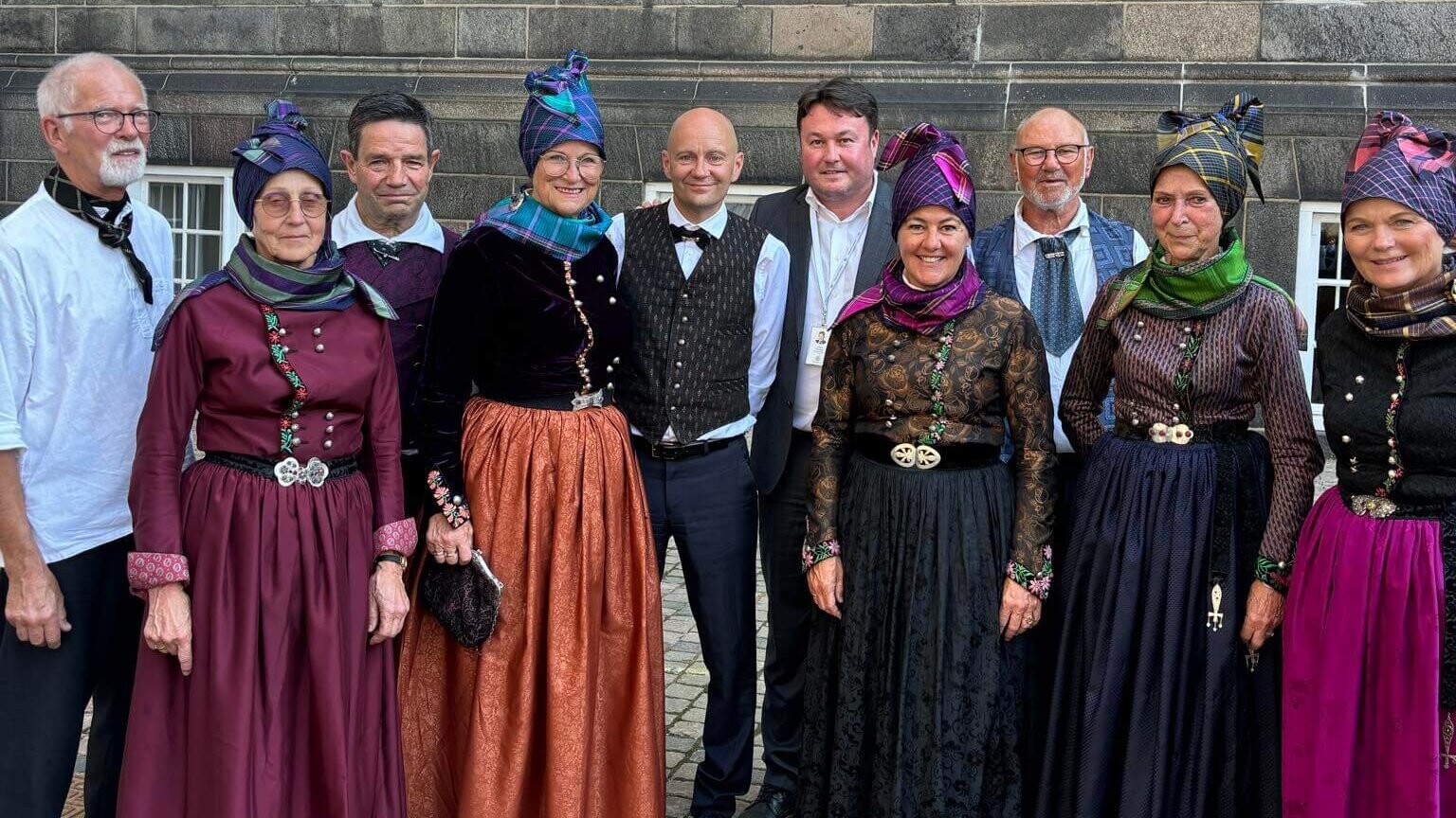 Således var en delegation fra Vadehavsøen mødt frem i den traditionelle Fanødragt og både et spillemandsorkester og folkedansere var med. Fanø-borgmester Frank Jensen (R) førte an og var selv i folkedanserdragt.