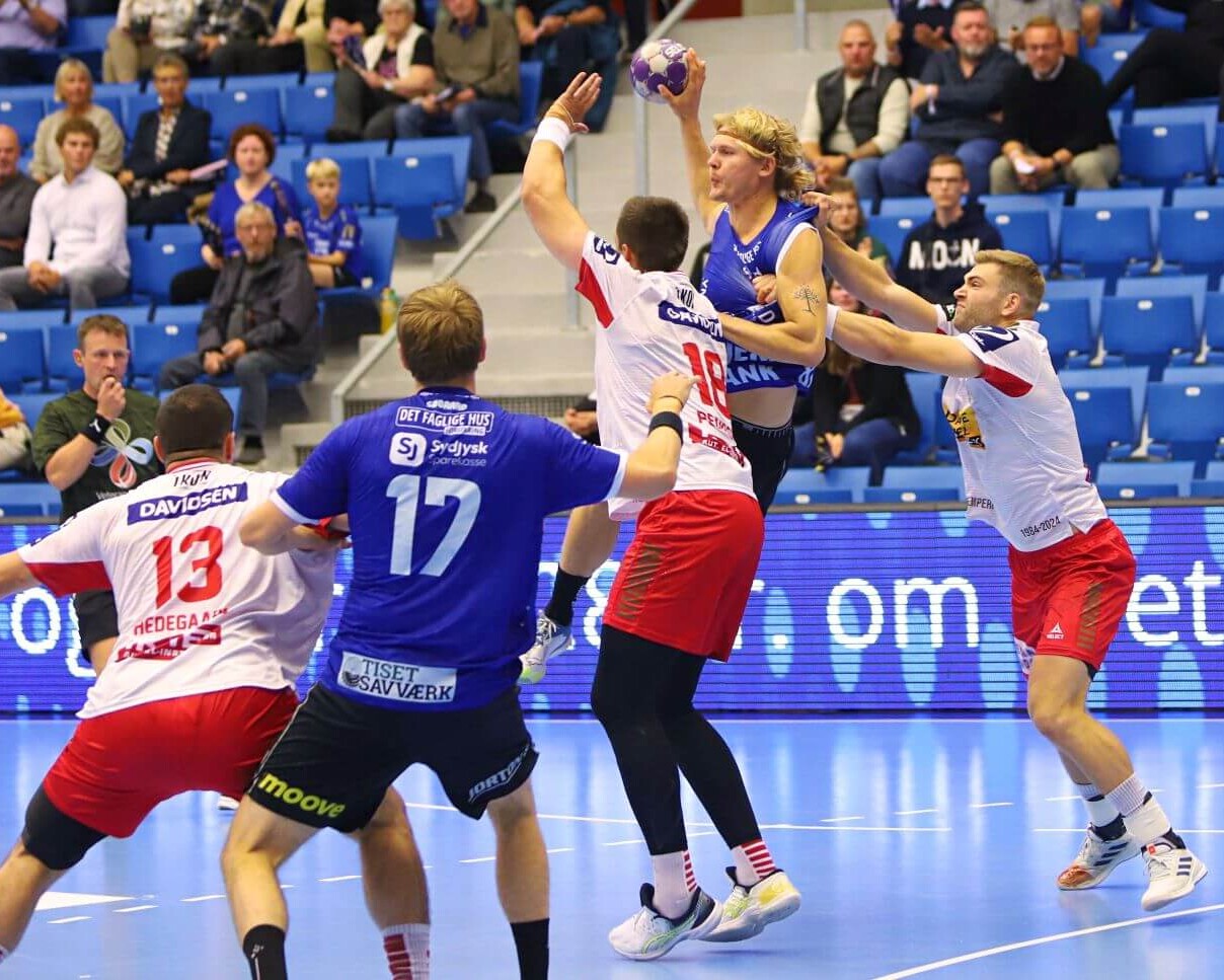 Ribe-Esbjerg HH står noteret med 0 points, mens modstanderne fra Sønderjyske Håndbold har to point efter en hjemmesejr over Grindsted (31-25), men tabte så overraskende mod Nordsjælland Håndbold med 35-32.