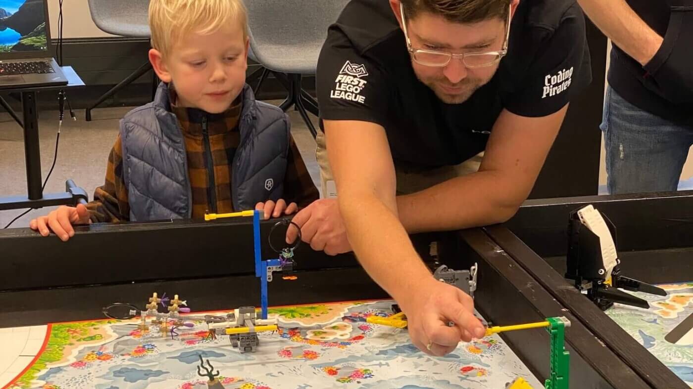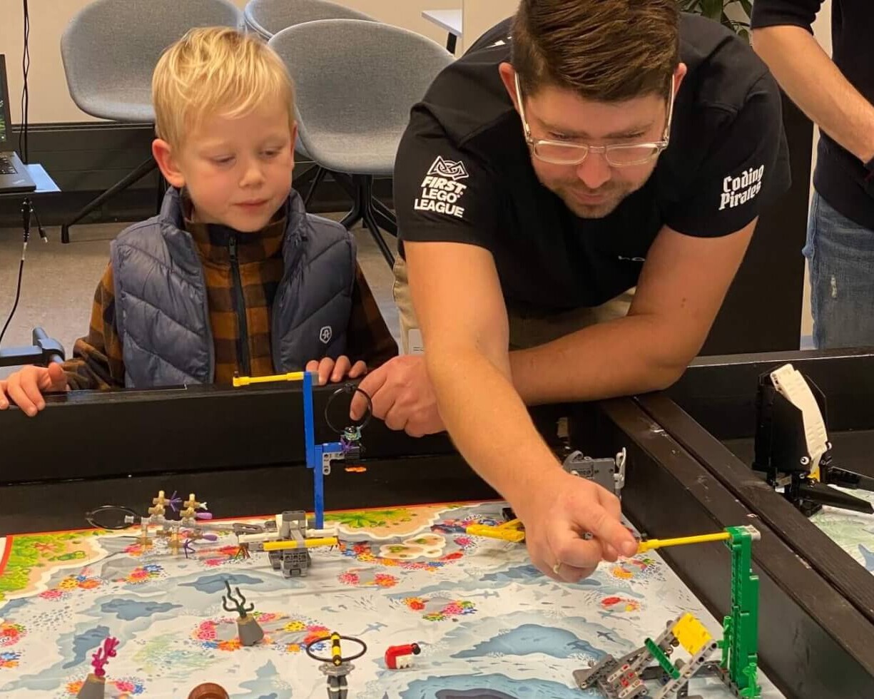 Mads Valentin Bram, nuværende projektleder og dommer i First Lego League, samt tidligere vinder af konkurrencen i Danmark hele tre gange, guidede deltagerne igennem årets tema, “Submerged,” hvor Lego-robotter og innovative idéer smeltede sammen.