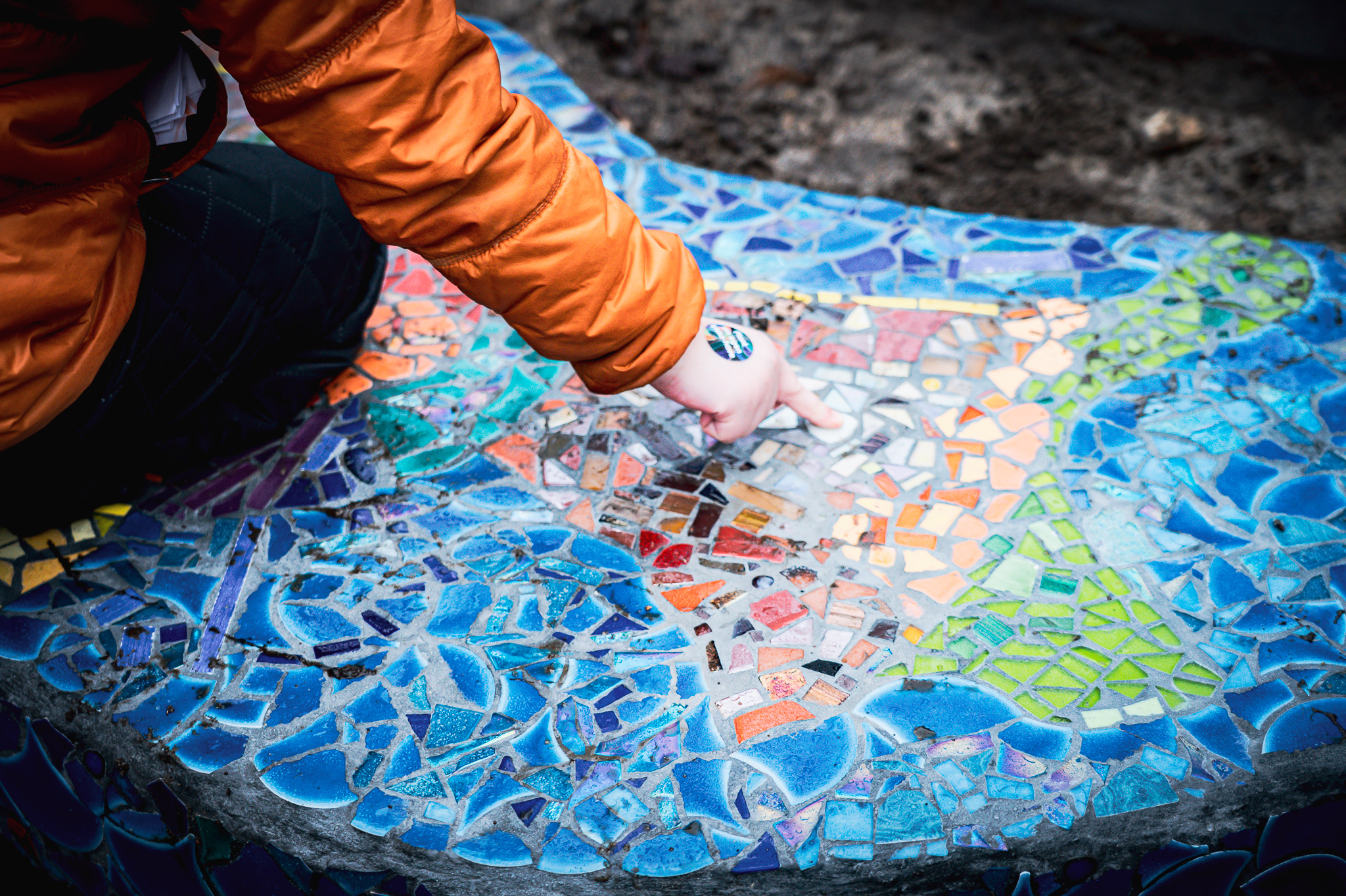 Lokale kunstnere har bidraget til legepladsens udtryk. Ikke mindst den lokale kunstner Lotte Lambæk, der har stået for udsmykning af store betontræer, som er en del af legepladsens rumlige oplevelse. Foran indgangene finder man poesisten, som forfatter Erik Trigger står bag.