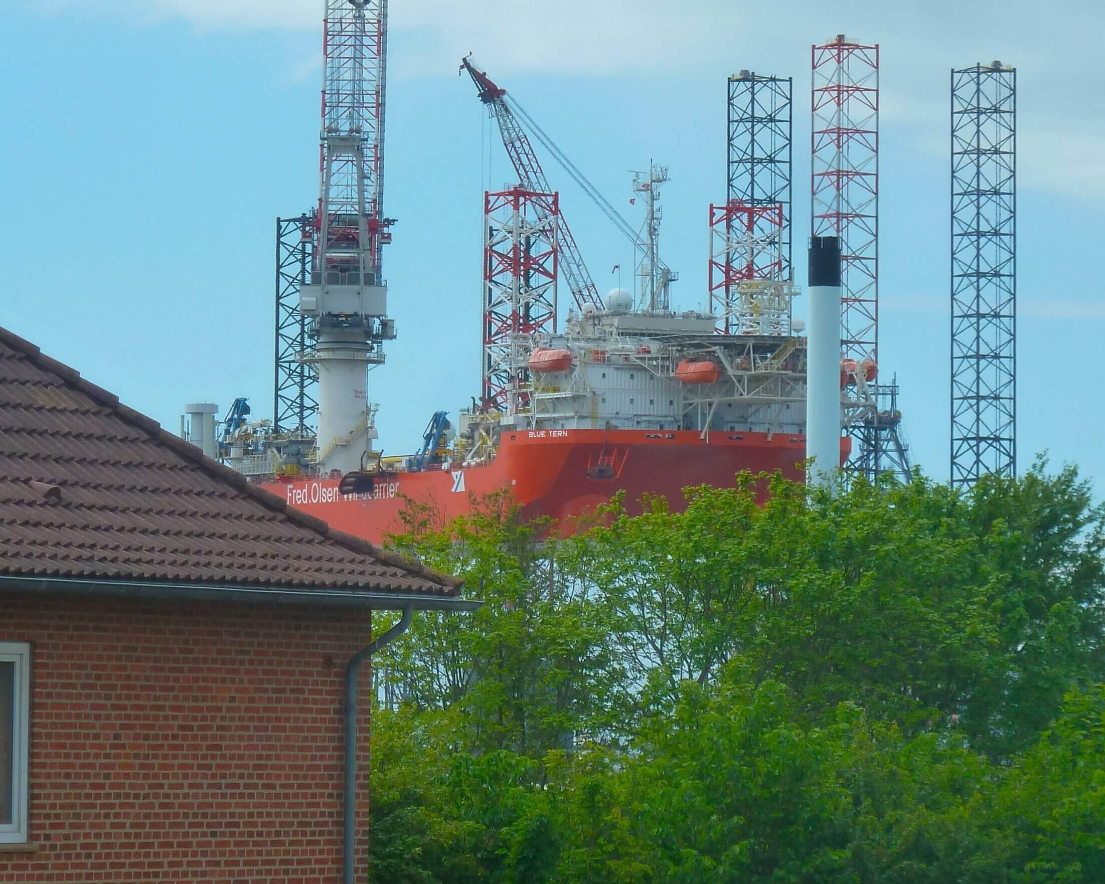 Solen hænger tung og brændende over havnens kraner og borerigs; over flimrende skorsten og boligblokke i disen i horisonten.